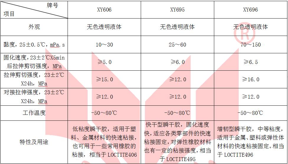 牌    號: XY606、695、696瞬干膠